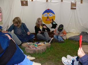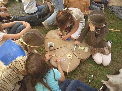 Kreative Kinder können in einem Zelt des Teepee-Lagers unter Anleitung selbst Indianischen Schmuck oder Werkzeuge basteln, und dann das so Geschaffene mit nach Hause nehmen.