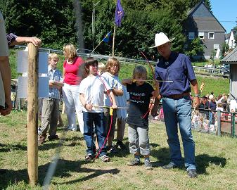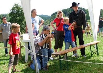 Hufeisenwerfen ist eine weitere Möglichkeit das eigene Können zu zeigen, genau wie die Kunst dem fliehenden Bankräuber die Goldsäcke nachzuwerfen. Und wer möchte kann auch mit den "Wild-West-Waffen" Erbsenpistole sowie Pfeil und Bogen beweisen, dass er genügend Zielwasser getrunken hat.