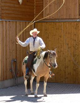 Auch den Europameister 2008 im Ranch-Roping, Klaus Wetzel, konnten wir wieder für das Westernfest gewinnen. Im Rahmen der Cowboy-Demonstrationen zeigt er die Arbeit mit dem Lasso vom Boden und vom Pferd aus, und wird auch wieder das ein oder andere freiwillige Kind im vollen Lauf einfangen.