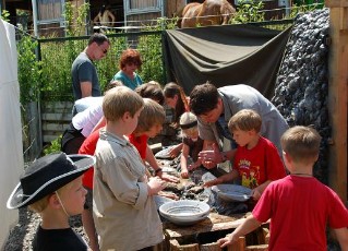 Wieder mit dabei ist natürlich auch unsere Goldmine. Nach den überraschenden "Goldfunden" am Winkel-Creek können kleine Prospektoren das glitzernde Metall mit echten Gold-Waschpfannen aus dem Wasserlauf herauswaschen. Erfolgreiche Claim-Besitzer können Ihre Funde behalten, oder im kanadischen Blockhaus gegen kleine Süßigkeiten einhandeln.