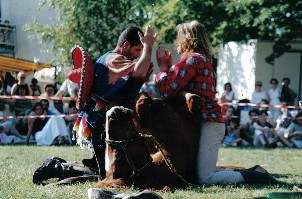 Wie in den vergangenen Jahren ist auch wieder das von vielen Großveranstaltungen bekannte indianische Stunt-Reiter-Duo "Comanches" (Homepage) mit dabei. In einer atemberaubenden Show zeigen sie vom Pferd aus nicht nur die Jagd- und Kampftechniken der Indianer mit Lanze, Bogen und Tomahawk sowie waghalsige Trickreitelemente, sondern auch indianisches Horsemanship in einer Freiheitsdressur.