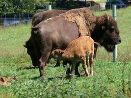 ... und auch die Bisons können nach Rücksprache mit dem Hofbesitzer Michael Kolb besichtigt werden. Streicheln ist hier jedoch nicht die Devise, denn es handelt sich nach wie vor um Wildtiere, die bei Fremden auf Distanz gehen und auf Übrgriffe aggressiv reagieren.